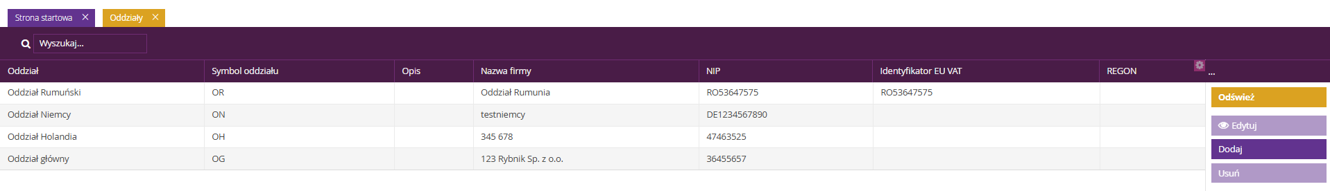 W celu dodania nowego oddziału firmy należy postępować według poniższej instrukcji: