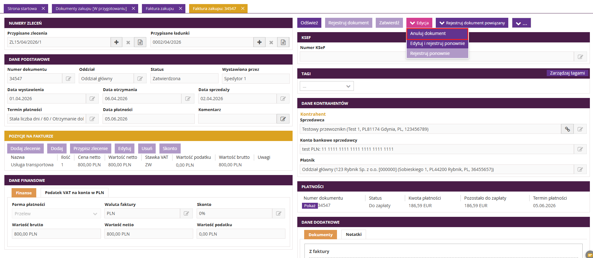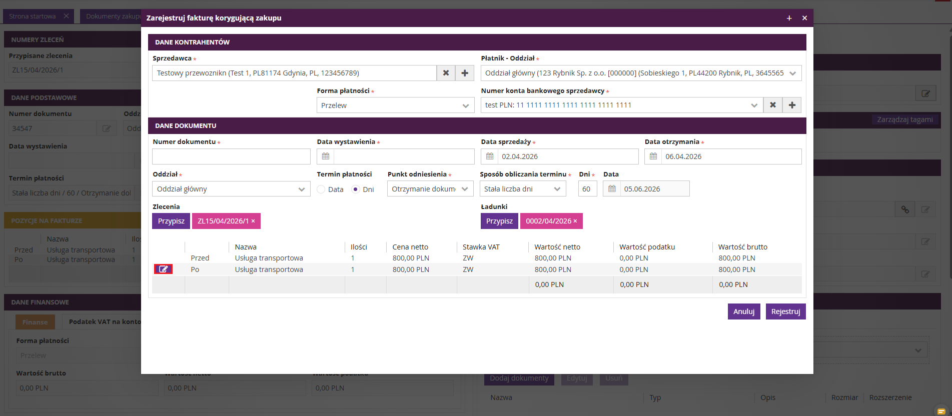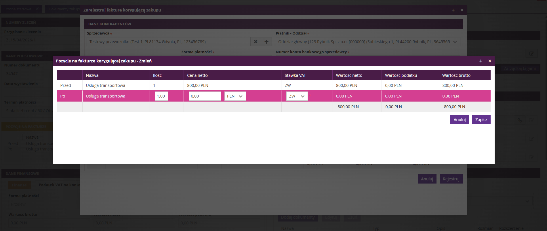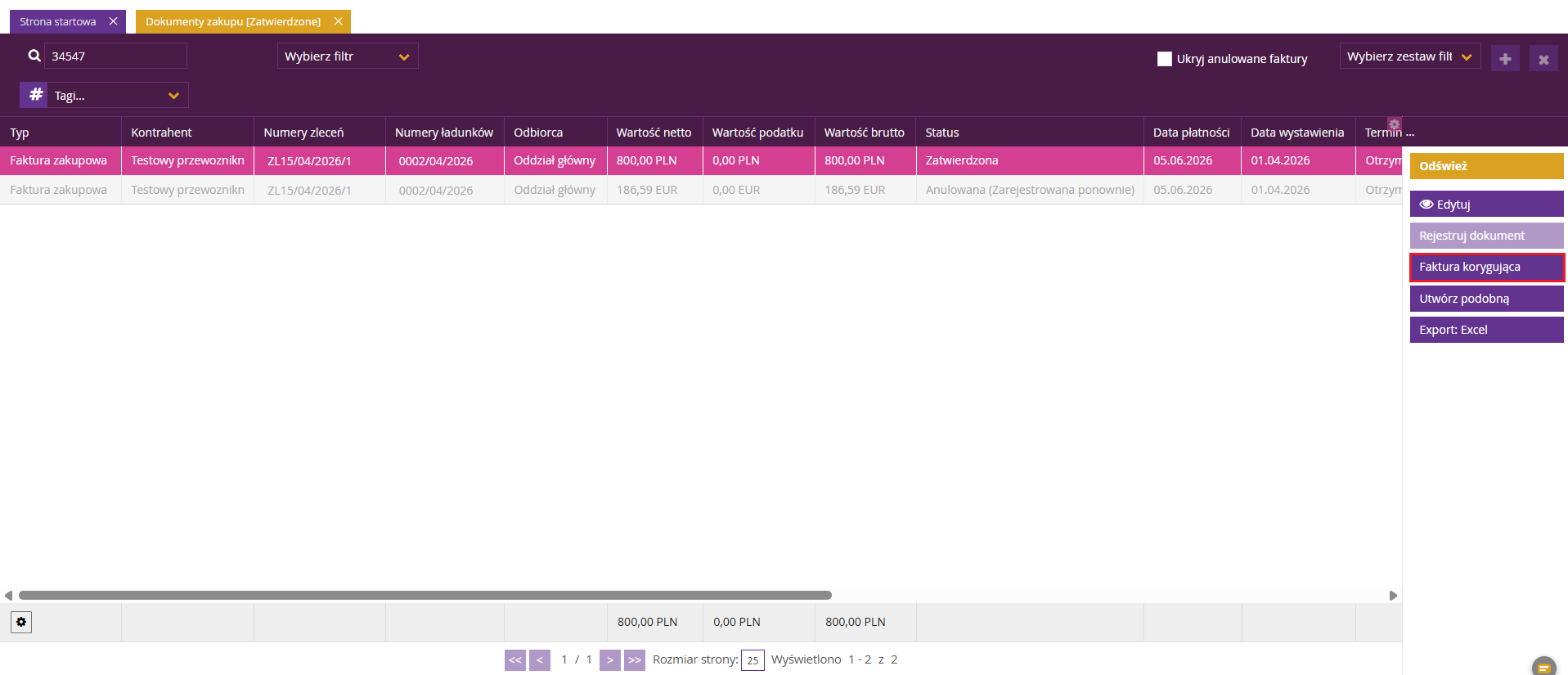 2. Anulowanie faktury zakupu