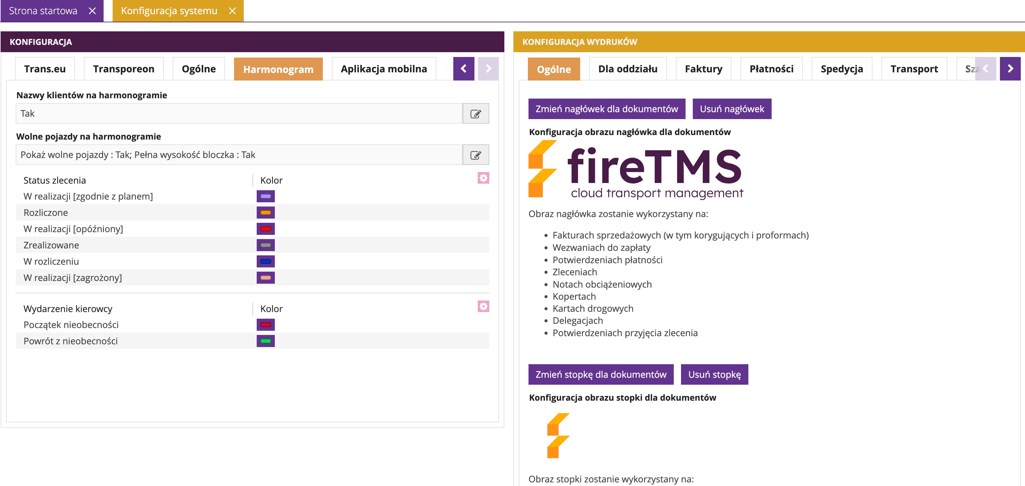 Konfiguracja >> Konfiguracja systemu >> zakładka Harmonogram.