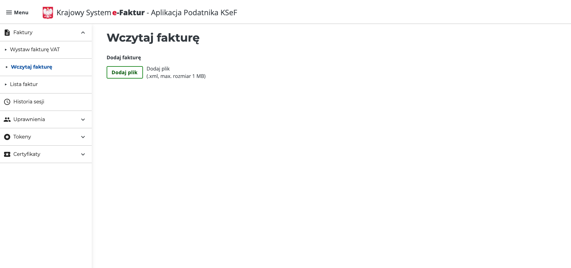 Po zalogowaniu przejdź do zakładki Faktury >> Wczytaj fakturę. Następnie Dodaj plik >> wybór pliku XML.