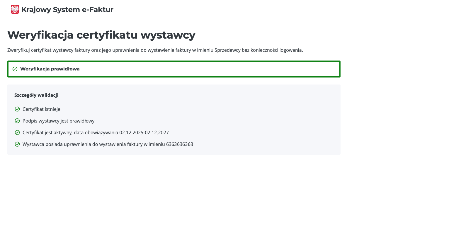 Uwaga: Aby zweryfikować, na jakim środowisku została wystawiona faktura należy zweryfikować adres strony: