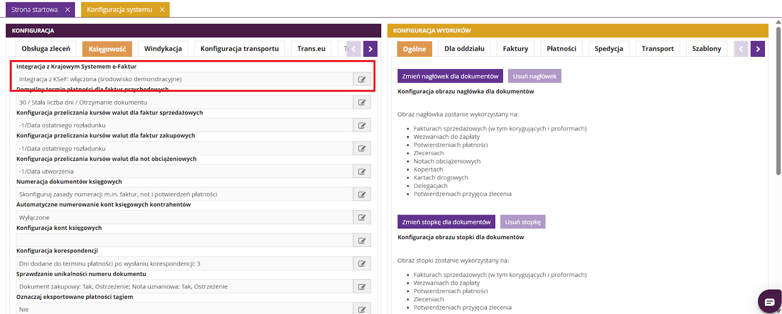 Konfiguracja >> Konfiguracja systemu >> Księgowość >> Integracja z Krajowym Systemem e-Faktur.