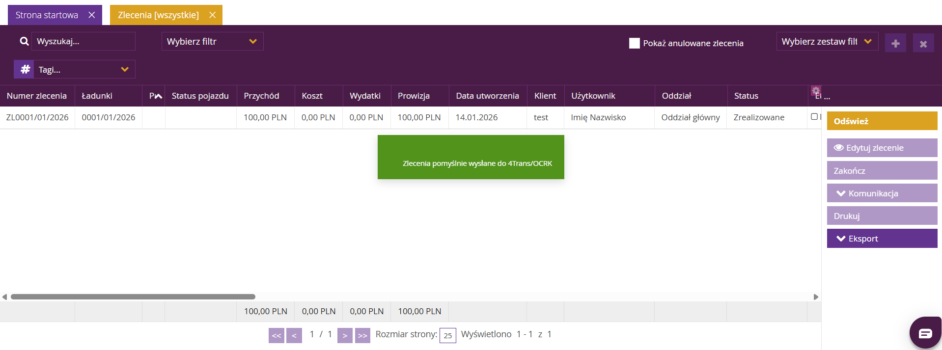 - lista zleceń jest odpowiednio przefiltrowana,