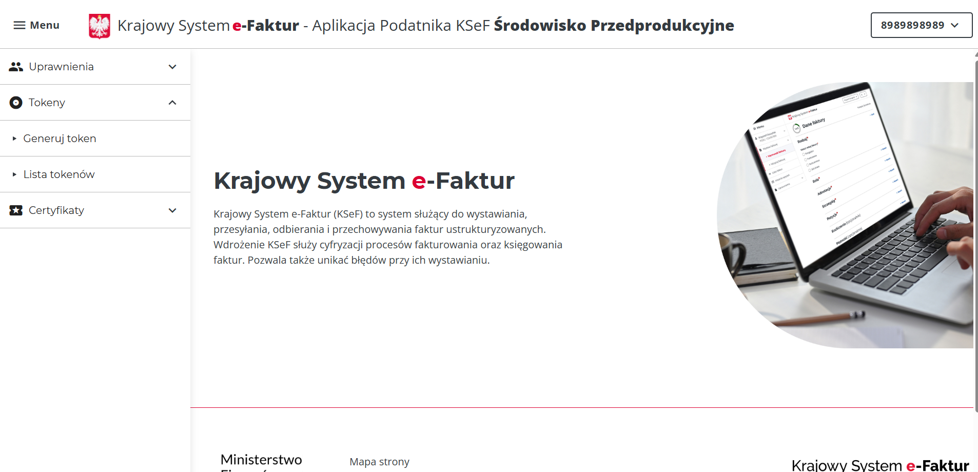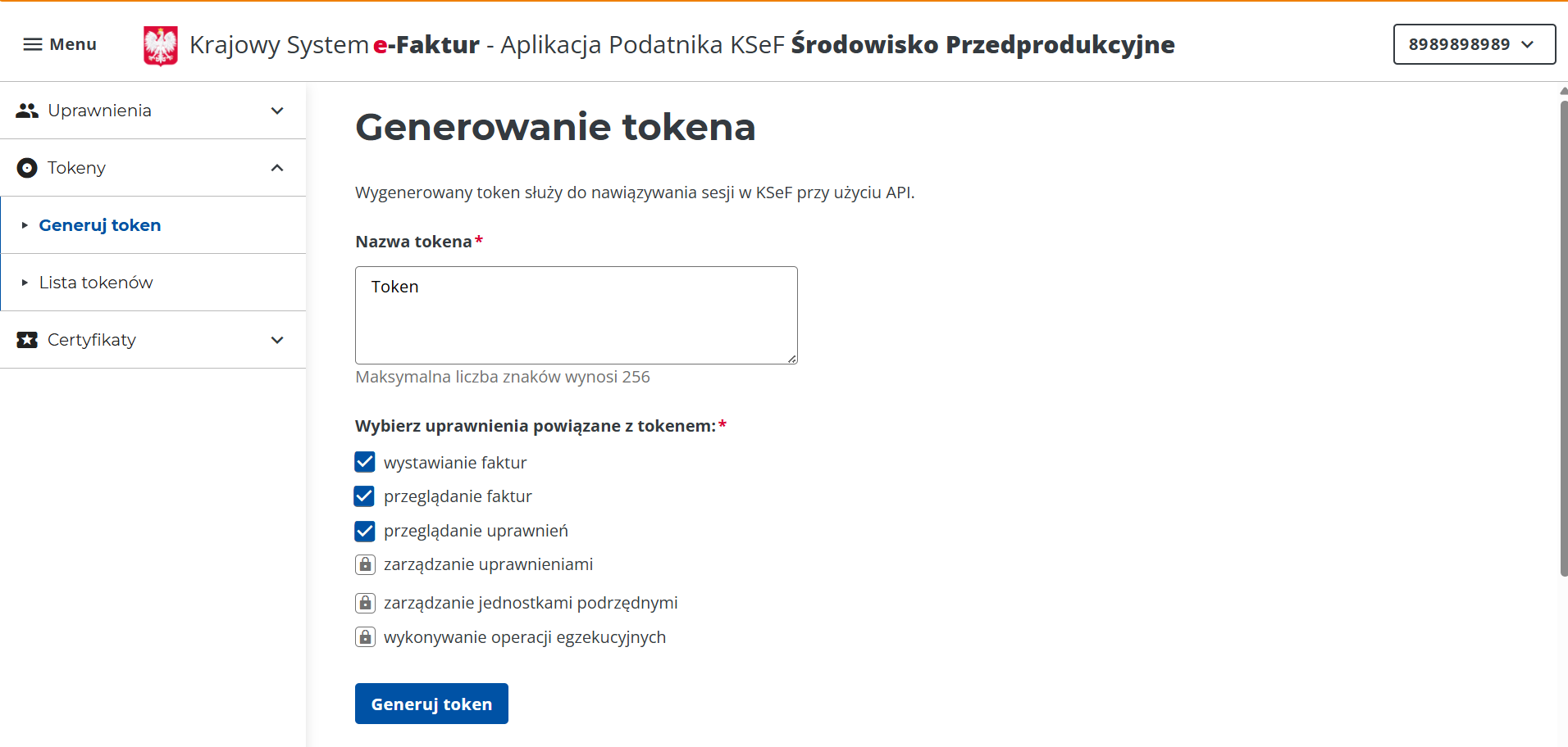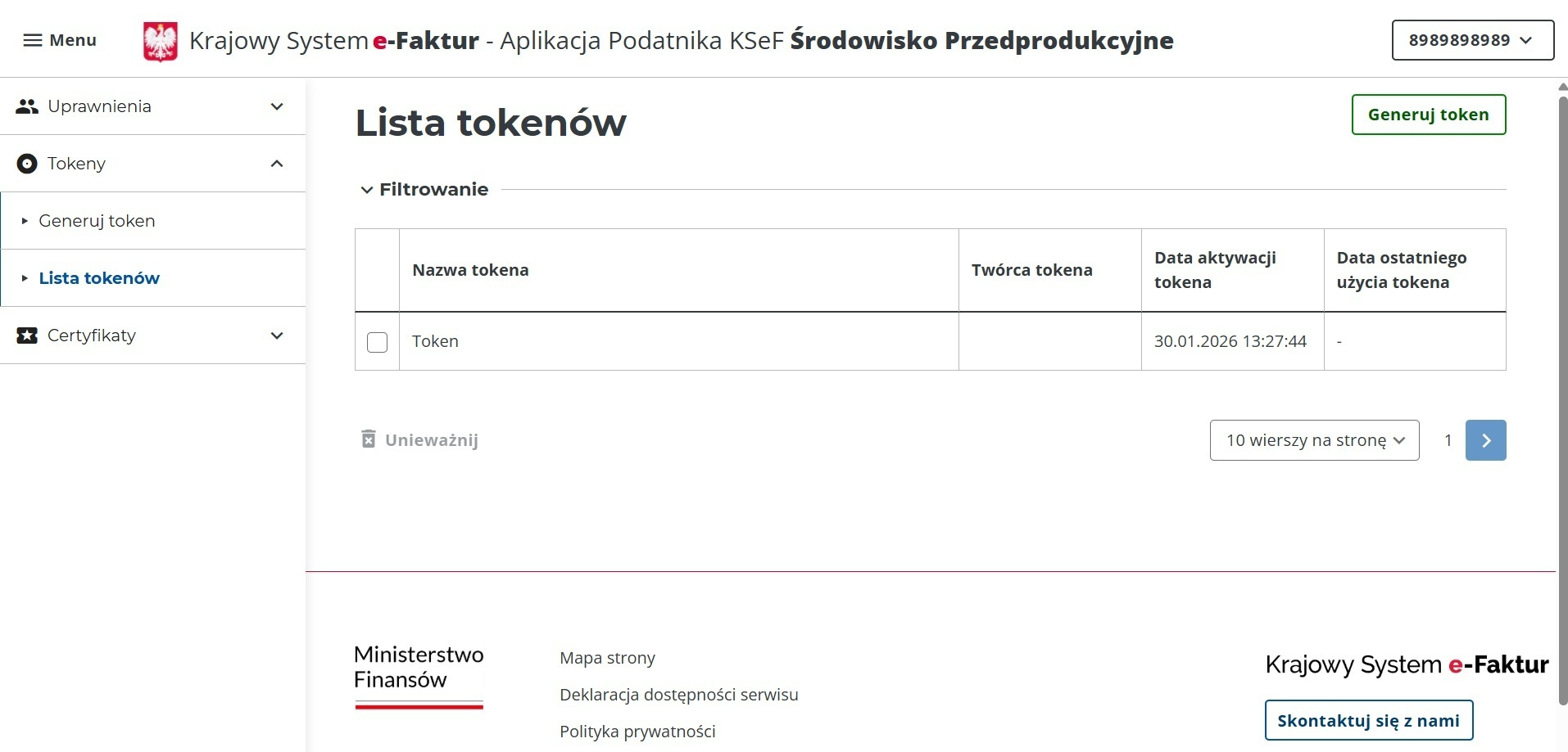W celu wygenerowania tokenu przejdź do platformy KSeF: